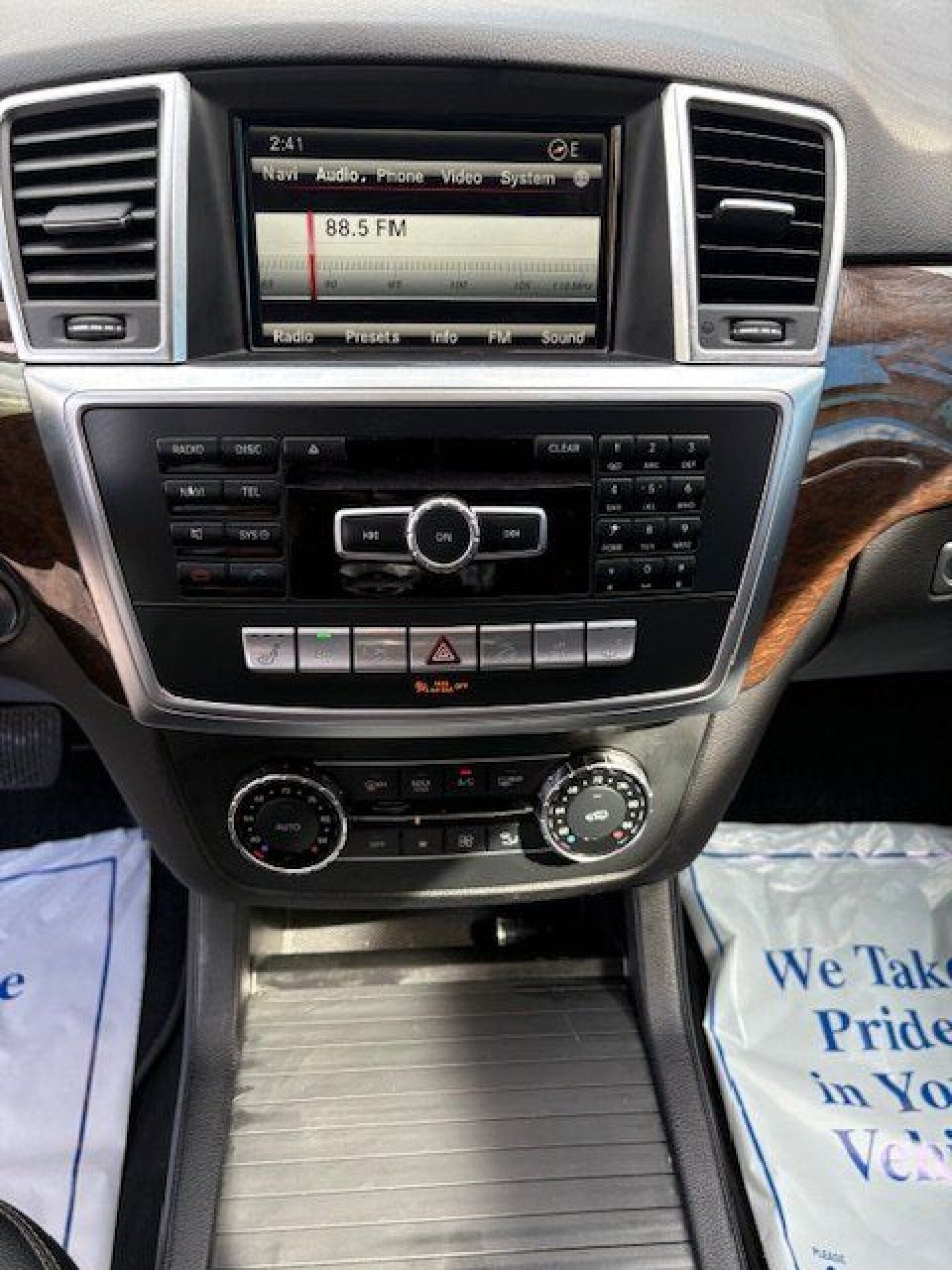 Console insert material: Aluminum and genuine wood console insert
